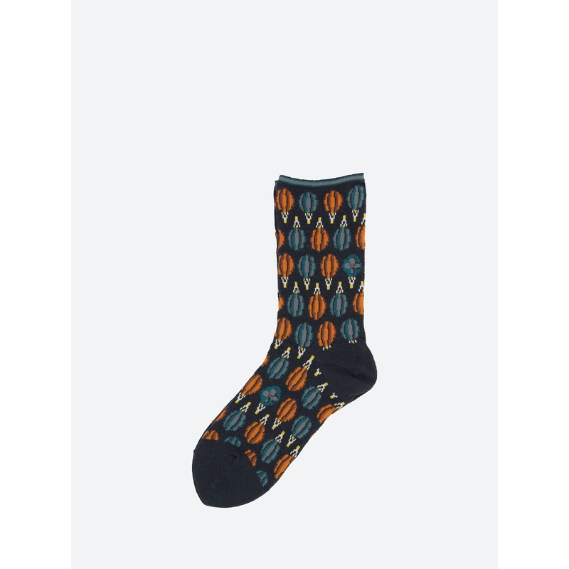 Antipast crew length socks knitted in a fine gauge blend with rows of air balloons.Crew length sockStriped ribbed cuffTonal heel and toeMaterialsFabric Content: 75% acrylic, 20% nylon, 5% woolMade in JapanSize GuideOne size fits most.For additional size in