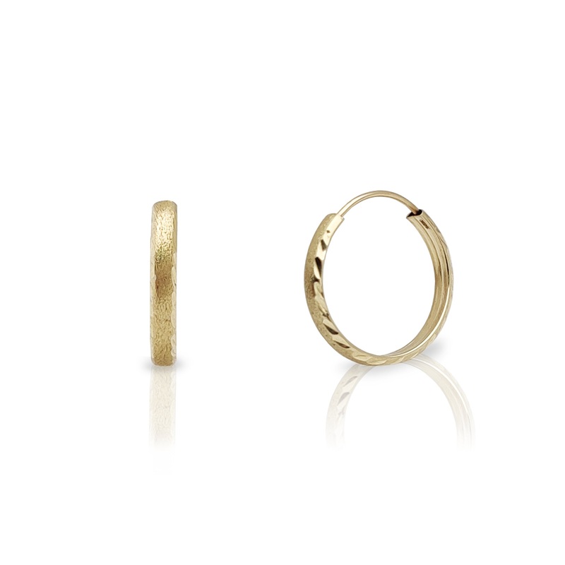 Precious Metal: 14 KaratYellow GoldEarring Back Type:SeamlessDiameter: 13.3 mm*Width: 2.0 mm*Approx. Weight: ~0.4 grams**All weights are approximate.Please contact us if you have further questions about alternate sizes or styles, availability, specificatio