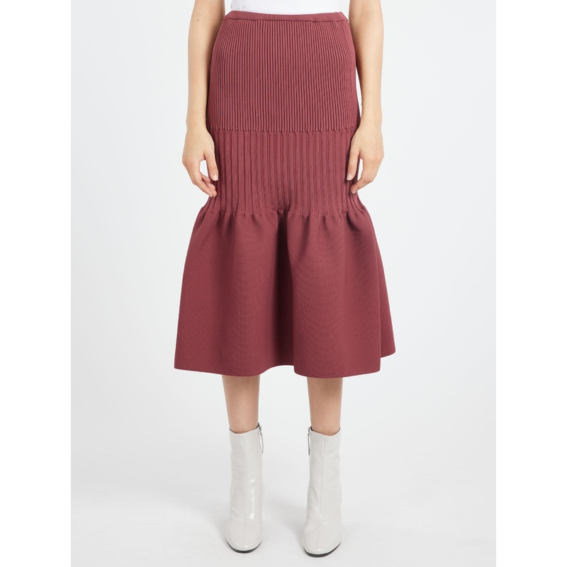 CFCL skirt with a unique silhouette created by two different types of elastic rib. Flares out at the knee and finished in a mermaid hem.