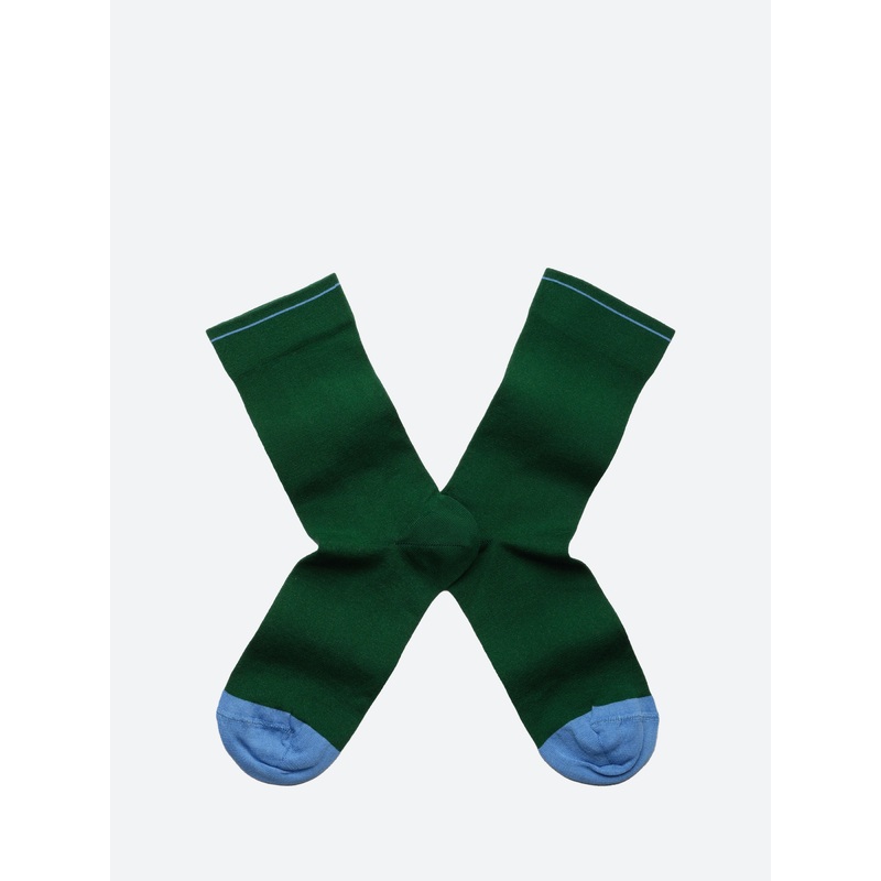 These mid-calf socks are made using premium Egyptian cotton and an elastane double thread.Solid forest green sock with blue toe and edgingMaterialsFabric Content: 90% cotton, 8% polyamide, 2% elastaneMade in FranceSize GuideFits true to size. We recommend