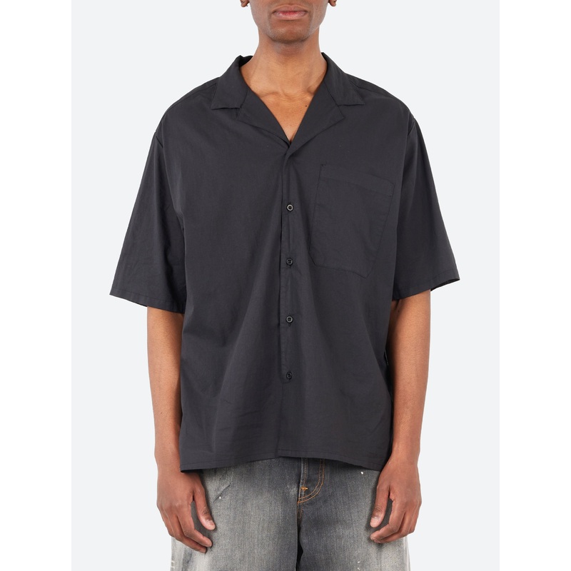 This camp-collar shirt features a single chest patch pocket and is made of lightweight cotton. It is designed with an easy, slightly oversized fit.