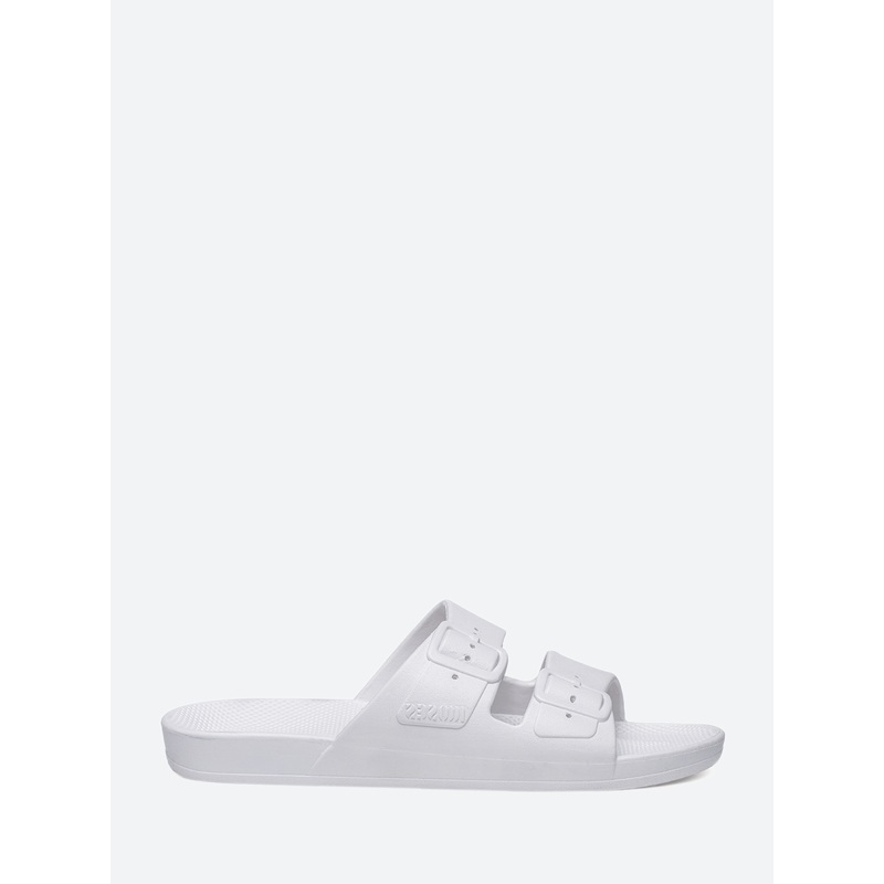 Freedom summer sandals are lightweight, casual footwear for summer. Recyclable, easily washed, and animal friendly.Slip-on sandalsFixed bucklesInjected with air and natural oilsNon-adjustable decorative bucklesWaterproofNon-slipperyMaterialsUpper: PCUOutso