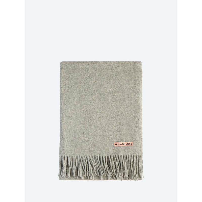 Acne Studios Canada New scarf is crafted to a wide dimension from pure wool and has fringed ends and a logo label stitched diagonally at the corner.