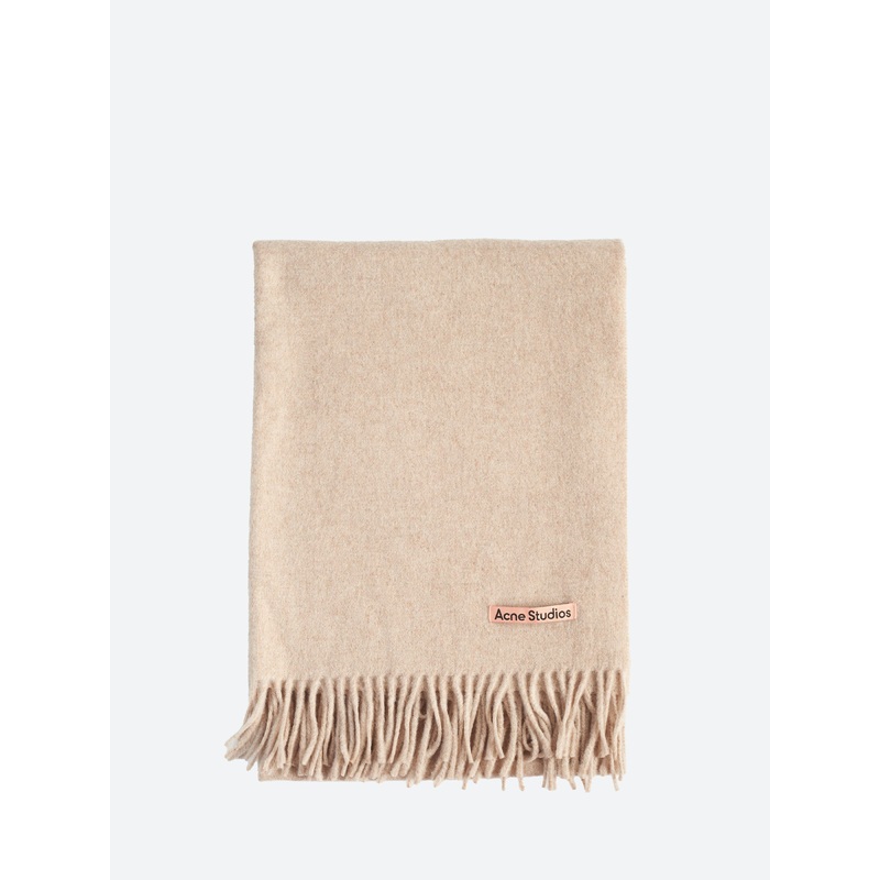 Acne Studios Canada New scarf is crafted to a wide dimension from pure wool and has fringed ends and a logo label stitched diagonally at the corner.