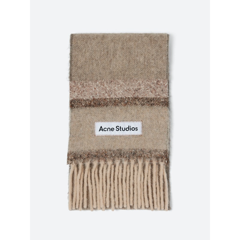 Acne Studios Vonkey scarf is crafted from wool and alpaca blend with a donegal texture, detailed with an Acne Studios logo label.Midweight woolVariegated textureFringed endsAcne Studios labelMaterialsFabric Content: 46% alpaca, 22% nylon, 17% wool, 10% moh