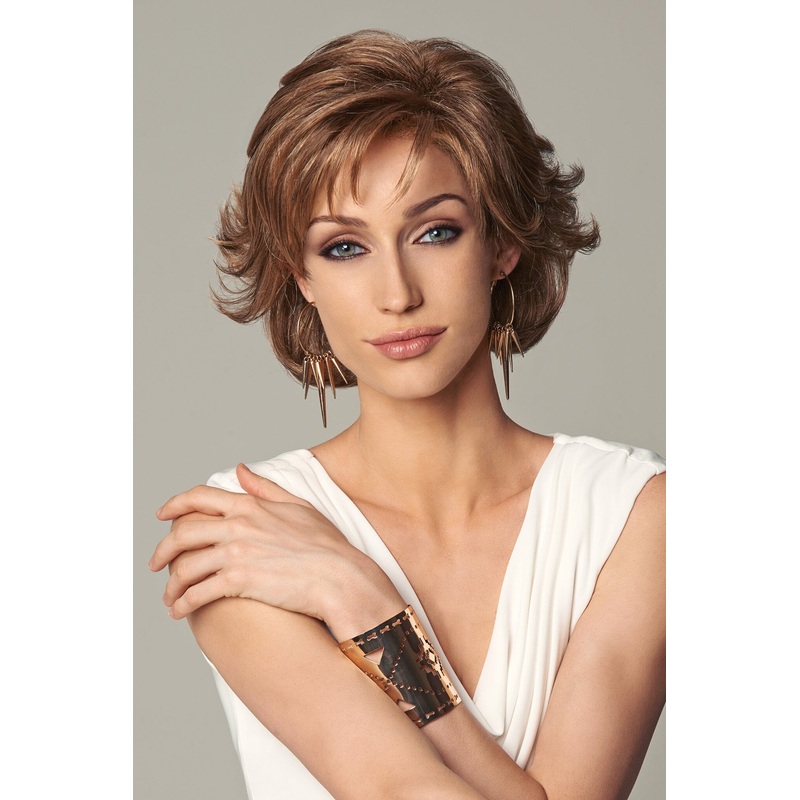 Wig Colors: Black Coffee (GL2-6), Dark Chocolate (GL4-8), Mahogany (GL6-30), Dark Chestnut (GL8-10), Hazelnut (GL8-29), Sunlit Chestnut (GL10-12), Walnut (GL10-14), Honey Pecan (GL11-25), Mocha (GL12-14), Golden Walnut (GL12-16), Honey Toast (GL14-16), Sandy Blonde (GL14-22), Buttered Toast (GL15-26), Buttered Biscuit (GL16-27), Toasted Pecan (GL18-23), Sunkissed Beige (GL23-101), Caramel (GL27-22), Chocolate Caramel (GL27-29), Rusty Auburn (GL29-31), Dark Copper (GL30-32), Sugared Smoke (GL38-48), Sugared Pewter (GL 51-56), Sugared Silver (GL56-60)