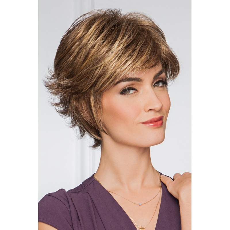 A full, barely waved top with short, textured layers in the sides and back transform a short basic style into a fresh, sophisticated wig.