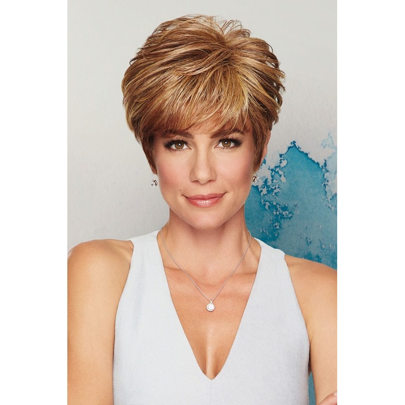 Generous length on the front and crown combine with all-over tapered layering to add a contemporary cadence to the traditional boy cut wig.