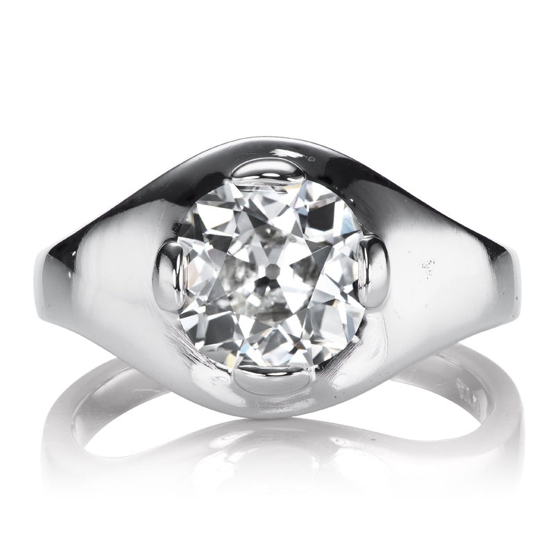 The Gadot 1.91 ring is an AB original design made right here in NYC. The ring centers a GIA-certified 1.91 carat Old Mine Cut diamond of H color, VS2 clarity. The stone is set in a chic 4-prong Platinum setting. The ring is currently size 5.75 and can be resized!