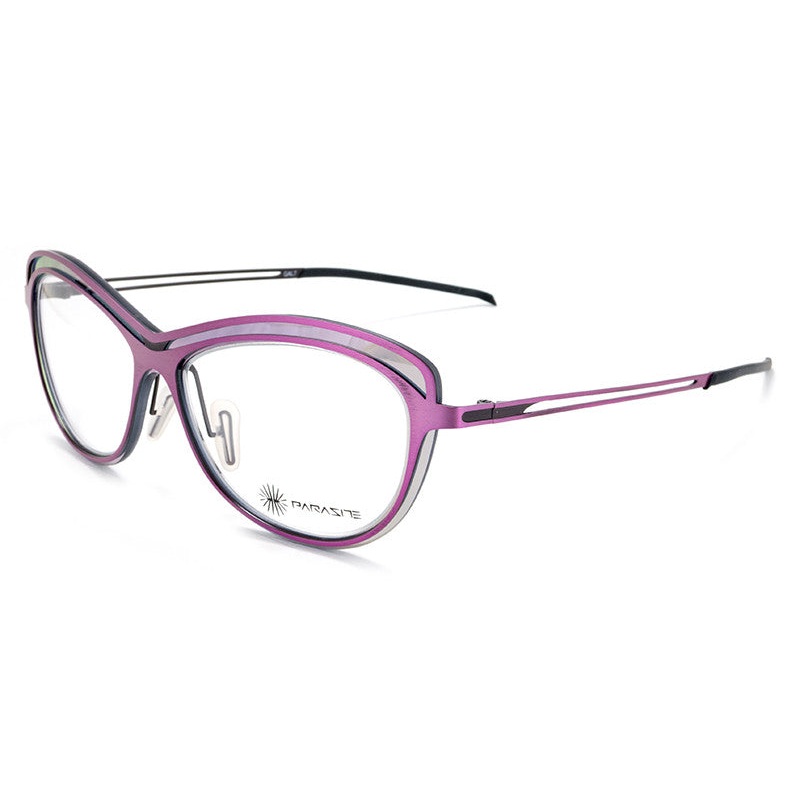 The Parasite Eyewear Galaxy 7 offers a soft cat-eye shape constructed of ultra-light weight stainless steel and a nylon iridescent frame front. All Parasite frames are made in France and include a 1-year manufacturer warranty. Includes Parasite Eyewear case and cleaning cloth.