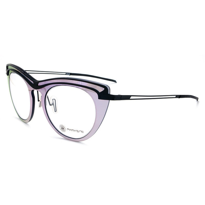 The Parasite Eyewear Galaxy 9-0 offers a soft cat-eye shape constructed of ultra-light weight stainless steel and a nylon iridescent frame front. All Parasite frames are made in France and include a 1-year manufacturer warranty. Includes Parasite Eyewear case and cleaning cloth.