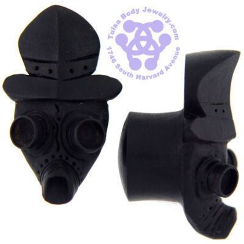 These double flare gas mask plugs are handcarved from arang wood by Urban Star Organics. They have approximately 3/8" wearable area between the flares. Choose your size below.Last chance to own these! We can't restock this design because Urban Star is no l