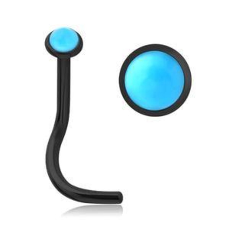 The 20 gauge nostril screwismade from black PVD coated 316L stainless steel. The 2.35mm semi-precious gemstoneis bezel-set. Choose your stone below.