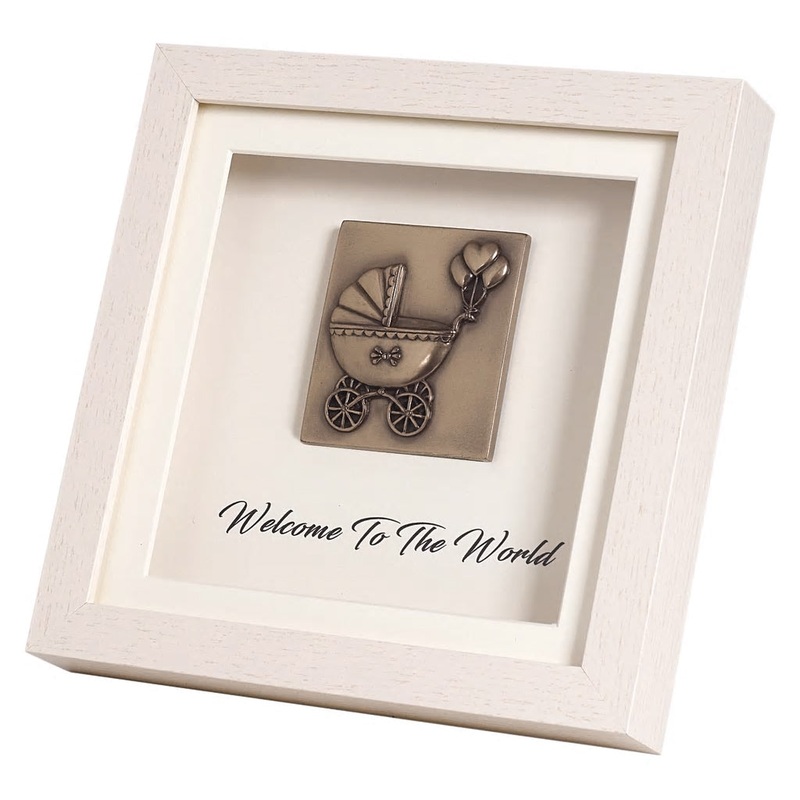 The perfect gift for a new arrival or christening. This beautiful frame is a lovely contemporary piece, with a white wooden frame. It can sit on a console or shelf or hang on the wall.