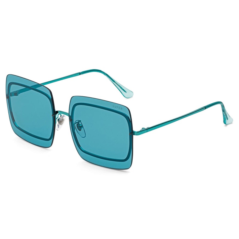 The Retro Super Future // Gia is an iconic, fashionable silhouette designed with an impeccable sense of contemporary style. A geometric oversized shape, Gia features a lightweight metal structure with rectangular lenses layered on top of the frame for a rimless, minimal design. Lenses are made by ZEISS. Includes RSF box case and cleaning cloth.