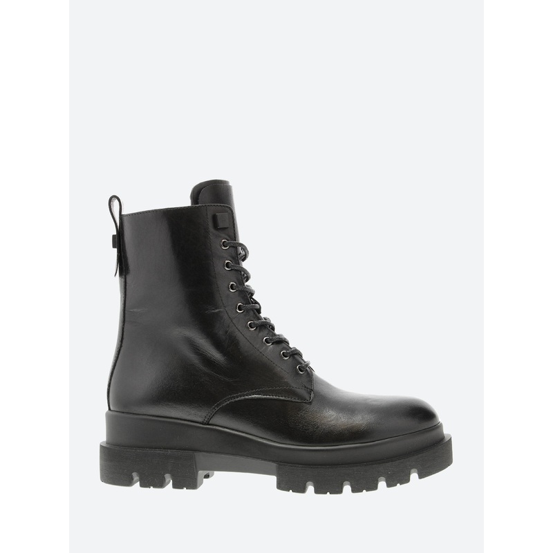 High ankle heightNine eye lace-upExposed side zip closurePull loop at the heel collarTonal stitchingRound toeLug soleMaterials Upper: leatherLining: leatherOutsole: rubberMade in ItalySize GuideWomen's style listed in Italian sizing.Fits true to size. We r