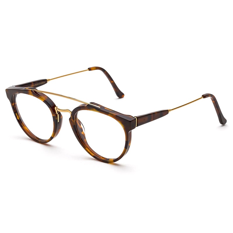The Retro Super Future // Giaguaro Optical is a novel re-edition of the sophisticated frame. For the coming season, the brands designers have decided to dress this metal-and-acetate silhouette in a polished acetate with metalwork. Includes SUPER box, case,