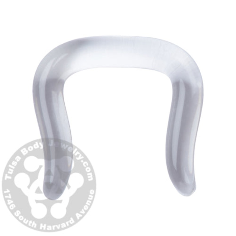 The clear septum retainer is hand blown by Glasswear Studios. The 14g is made from fused quartz glass, and 12g is made from borosilicate glass. The 5/16″ wearable area is a fairly average size that would fit most people. Gauge tolerance is +-0.1 millimeter. Please note these are glass and can break if forced to bend. Not recommended for athletic or violent activities. Choose your size below.
