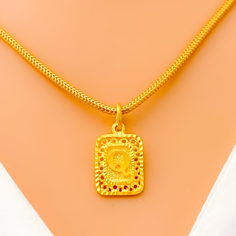 This 22k gold letter pendant, weighing 2.2 grams, features a radiant and elegant design that exudes sophistication. The polished yellow gold finish enhances its glistening charm, while the 0.9-inch length ensures a versatile and stylish accessory. Ideal fo