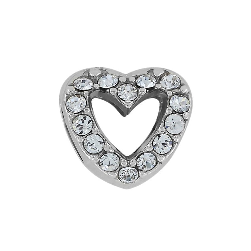 Add a sweet sentiment to your charm jewelry with this heart bead, embellished with sparkling fine quality crystal on one side.