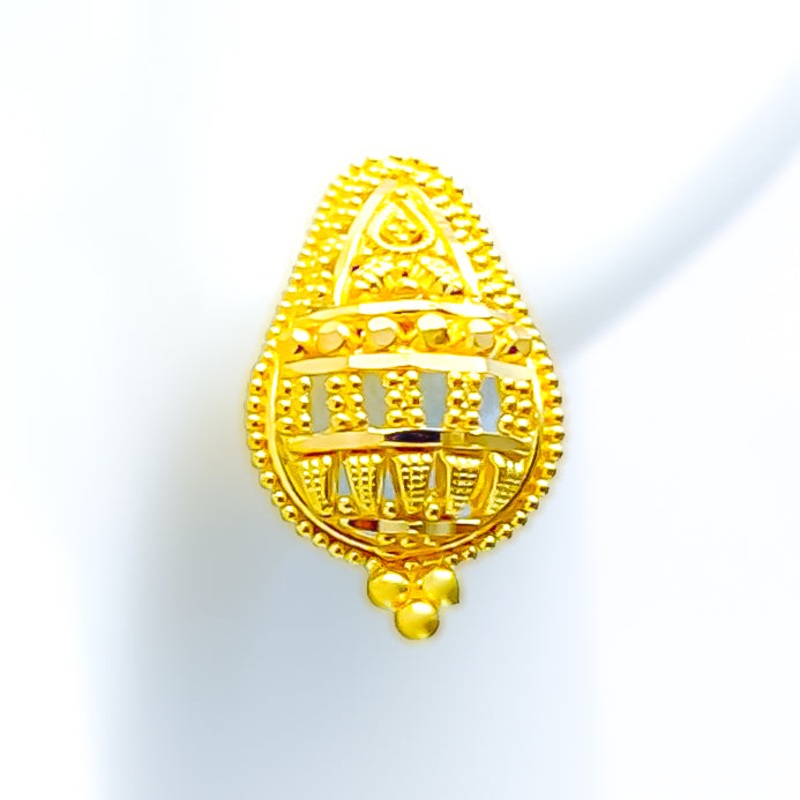 These exquisite 22k yellow gold earrings, weighing 3.9 grams, feature a lustrous finish that enhances their radiant appeal. Designed in a classic tops style, each earring measures 0.75 inches in length and is secured with a screw-back post, ensuring a comfortable and secure fit. The high-purity gold and polished surface make these earrings a timeless addition to any jewelry collection. Ideal for those who appreciate understated elegance, they are perfect for both everyday wear and special occasions, adding a touch of sophistication to any ensemble.