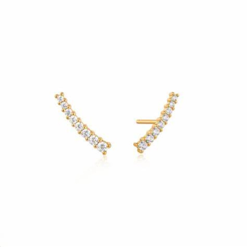 Designed in the perfect curve to sweep across your lobe, opt for ear crawlers this season as a new take on a classic pair of cubic zirconia earrings. With a focus on ultra-glam embellishment, these ear crawlers up the ante when creating a unique ear stack look. Just add your favourite studs to complete the look. OurGold Glam Crawler Stud Earrings are also available in silver.