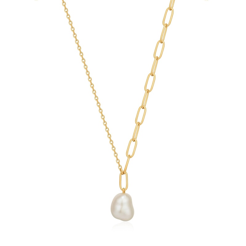 Theres no need to decide between minimal and chunky with this striking pearl detail pendant necklace. Combining both a delicate and chunky chain, the design is finished with a unique baroque fresh water pearl droplet. Unconventional and yet timeless, style