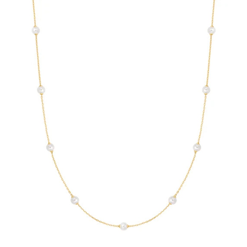 Miss Dainty is designed for the woman who loves elegance with a touch of whimsy. The exquisite and romantic design, combined with fine craftsmanship, ensures you radiate charm. This pearl station necklace showcases delicate details, embodying grace and sub