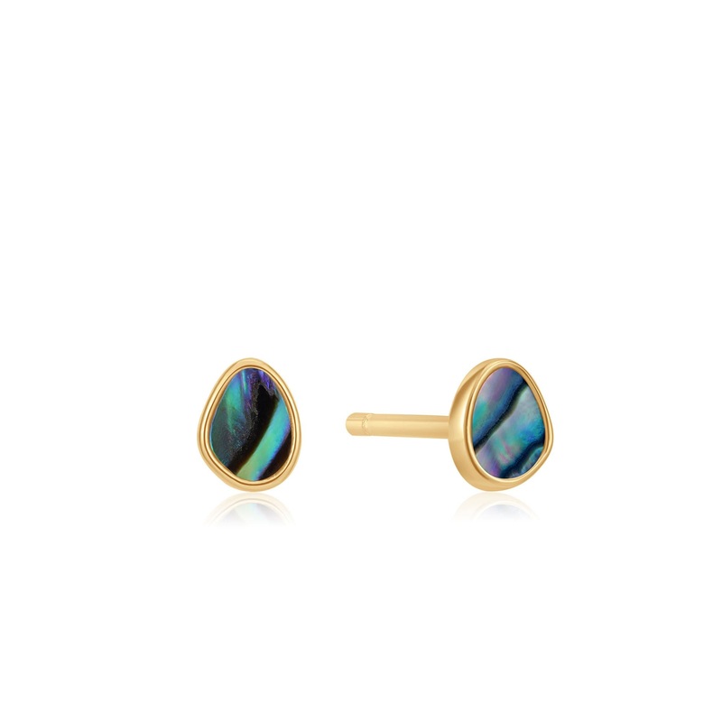 Making simple studs a thing of the past, our Tidal gold studs balance everyday wearability with ultimate cool. A smooth and uniquely asymmetric shape, theyre finished with a stunning abalone central stonefor just enough colour to complete your look.