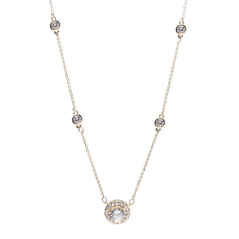 Elevate your outfit with our exquisite gold tone pendant. Adorned with stunning stone stations, this elegant piece adds a touch of sophistication to any look. Timeless in design, it's perfect for those seeking a luxurious and polished addition to their acc