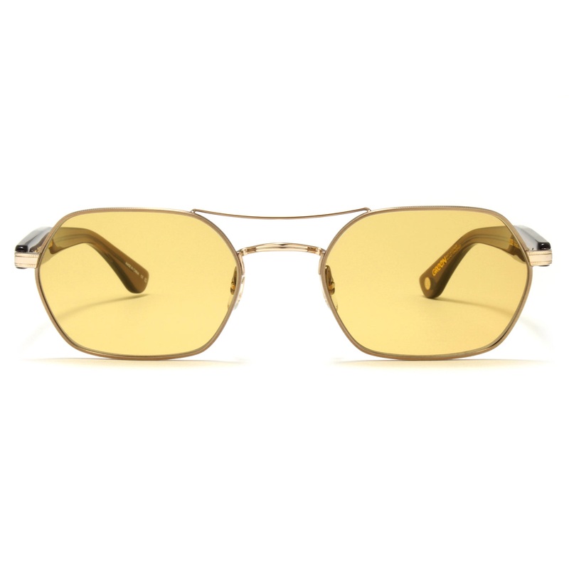 The Garrett Leight // Goldie is a modern take on 70's casual glamour. With its geometric silhouette, custom filigree, and bi-colored metal-plating, this show stopping frame has it all. The Goldie is part of their Green Collection it's made from their bio-b