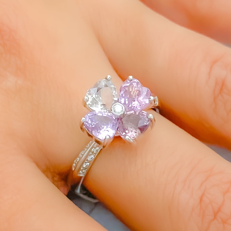 Gorgeous Amethyst Diamond + 18k Gold Flower Ring
