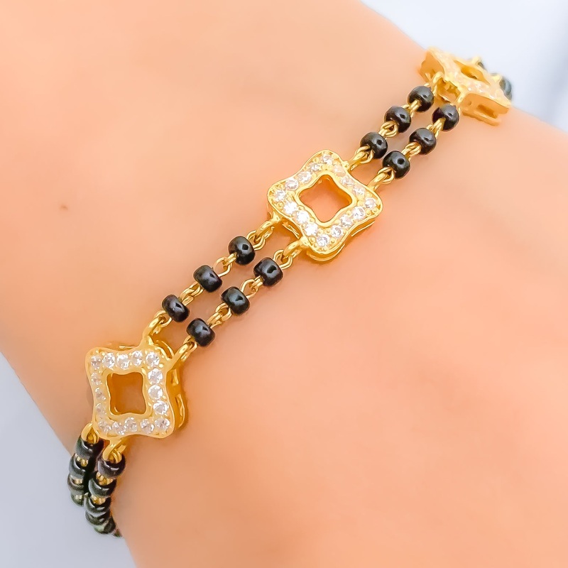 Elevate your wrist game with our stunning Geometric Bracelet. Crafted from luxurious 22k gold and adorned with sparkling Cubic Zirconia stones and black beads, this piece exudes sophistication. With a weight of 5.7 grams and a secure S Lock, it's the perfe