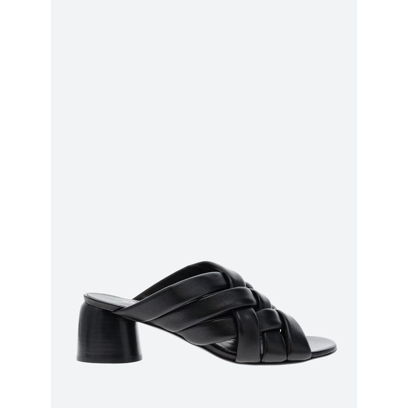 Halmanera woven sandal in soft nappa leather. A slip-in mule for easy on and off. Finished with a tonal wooden heel.Interwoven strapsSlip-on styleOpen toeStacked heelMeasurements:50mm heelMaterialsUpper leatherLining: leatherOutsole: leather with rubber in