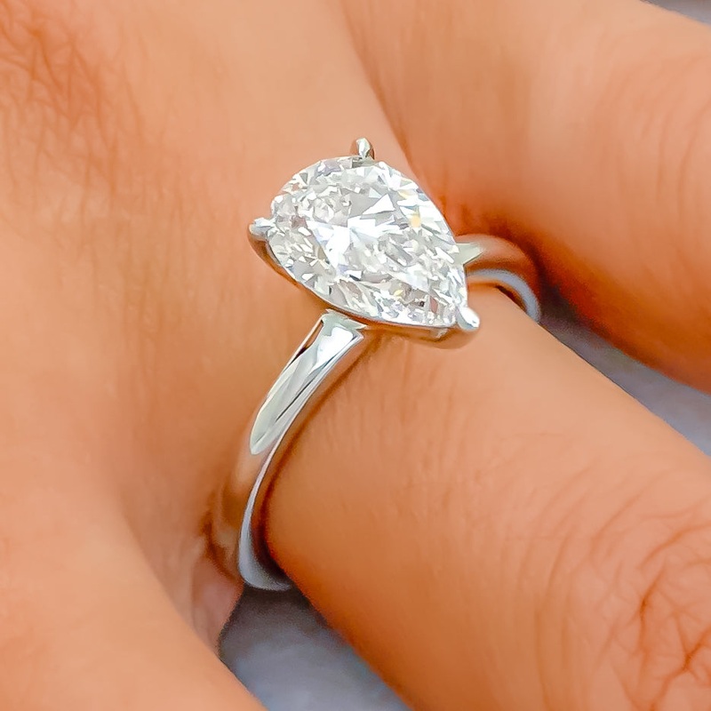 This 14k white gold ring, weighing 4.4 grams, showcases a grand ethereal design featuring a 2.0ct lab-grown pear cut diamond. The diamond, with F-G color and VS quality, adds a touch of majestic elegance to the white gold setting. Sized at 7, with an option for resizing, this ring is perfect for those who adore the unique allure of pear-shaped diamonds. The combination of its enchanting shape and the luster of white gold makes it a captivating choice for any occasion that calls for a touch of luxury and sophistication.
