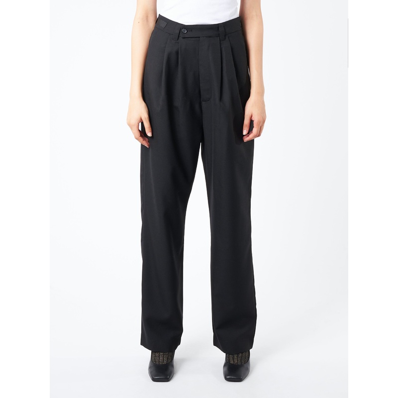 Loose legged wide trouser with a dropped crotch. To be worn on hip or high waist.Button closure with zip flyGrosgrain at right waistbandDouble-pleated frontSlash pocketsWelt pockets at the rearLoose, wide legsMaterialsFabric Content: 55% polyester, 45% woo