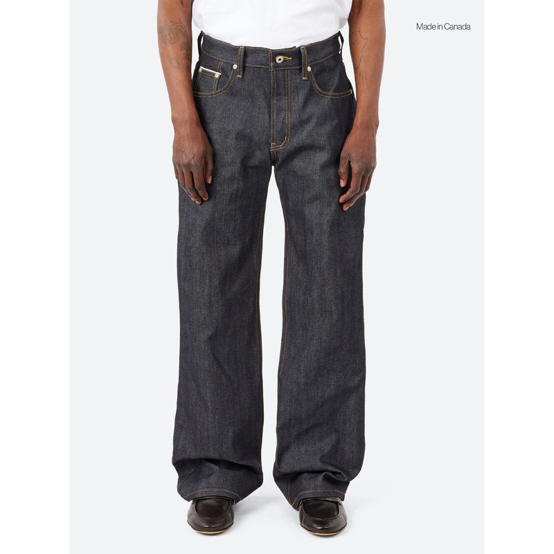 The Strong Guy is a relaxed straight fit; high rise, fuller in the seat and thigh that falls to a wide leg opening. The Left Hand Twill Selvedge is a 13.75oz indigo rope dyed Japanese selvedge denim, woven on vintage shuttle looms in a left hand twill construction.
