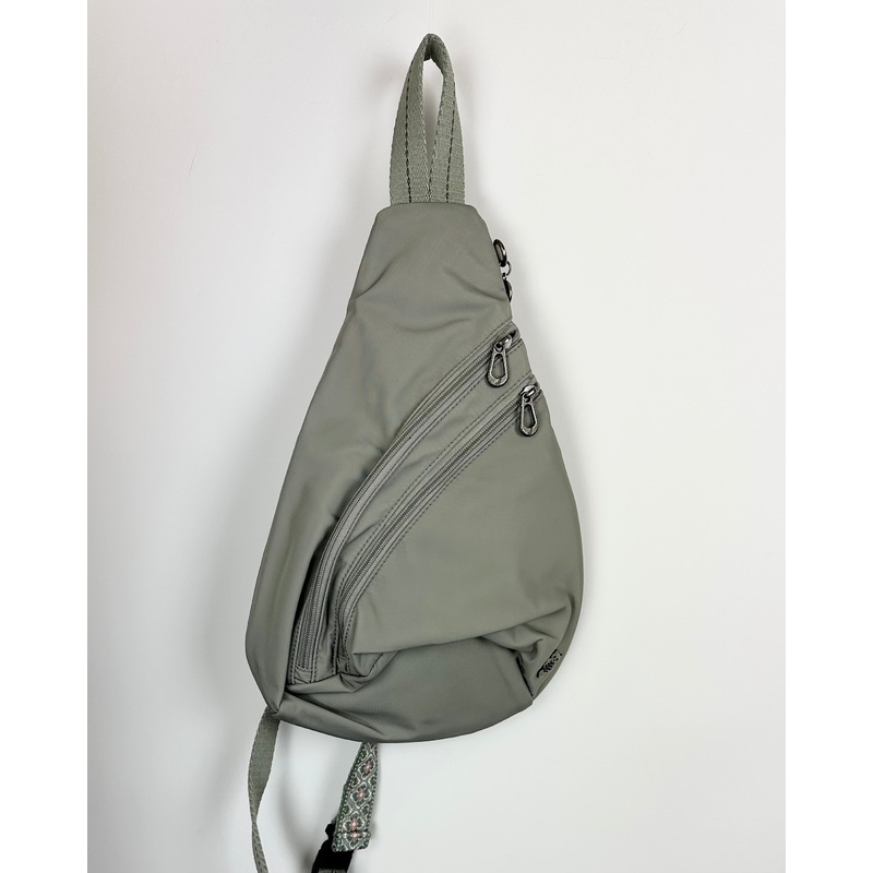 Brand new - donated from the designerThe Sak green sling crossbody bag with a gray, pink, and green floral adjustable main snap strap, silver hardware, large interior pocket, interior small zipper pocket and medium sized interior mesh pocketApproximately 6