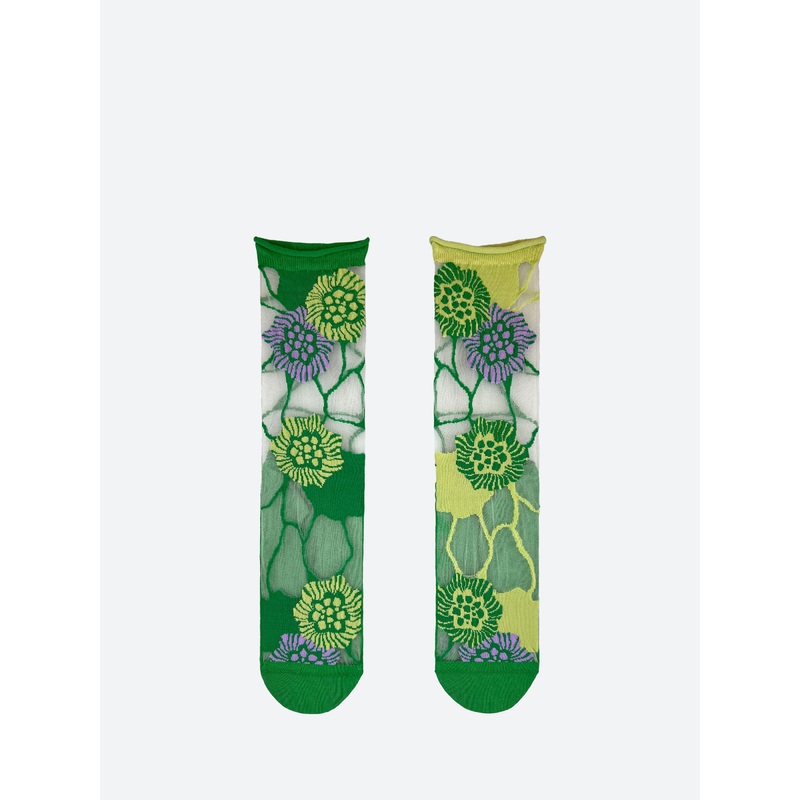 A signature of 2nd PALETTE, these sheer socks feature asymmetrical left and right designs.