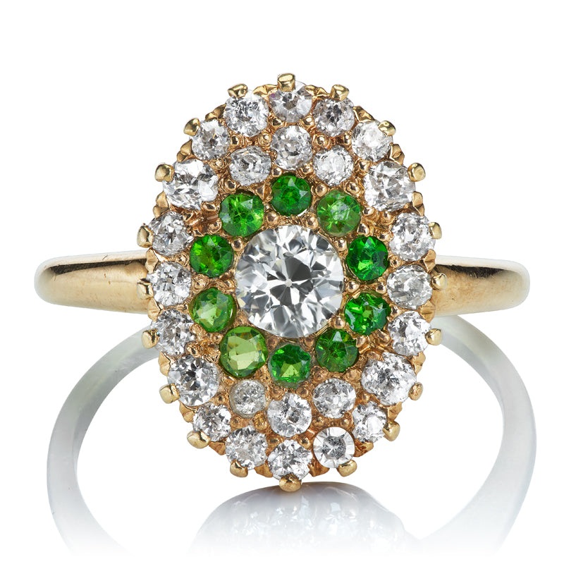 Antique Diamond and Demantoid Garnet Cluster Ring