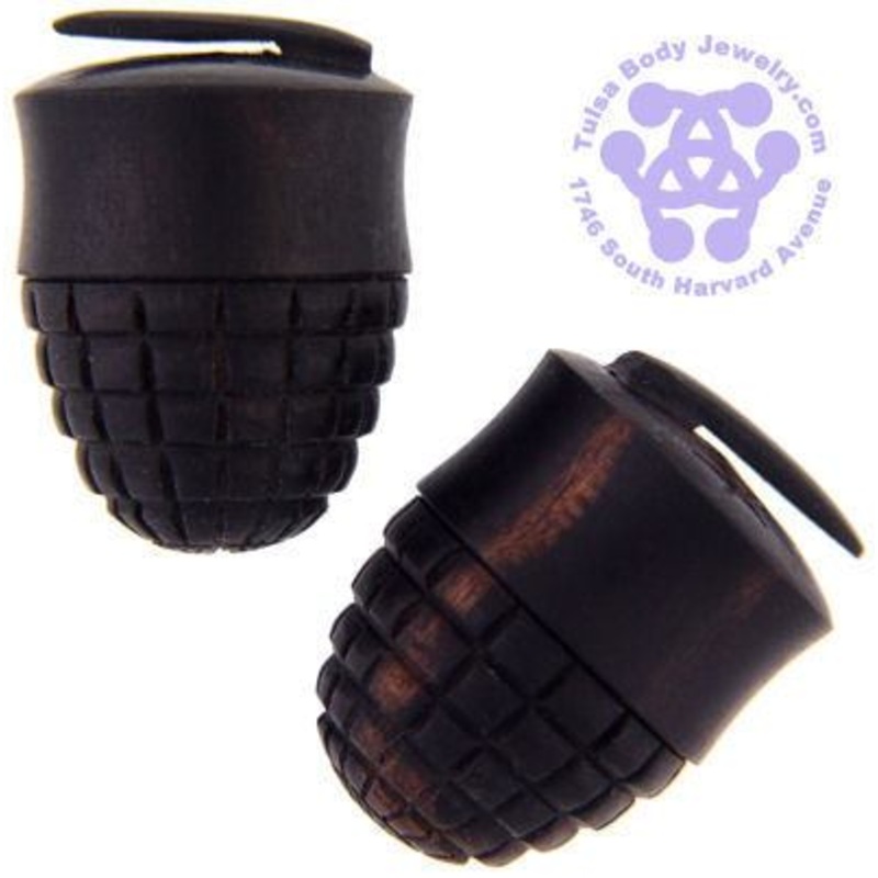 These double flare grenade plugs are handcarved from arang wood by Urban Star Organics. They have approximately 3/8" wearable area between the flares. Choose your size below.Last chance to own these! We can't restock this design because Urban Star is no lo