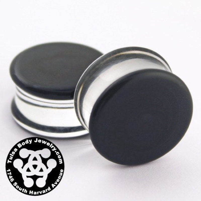 These double flare grey color front plugs aremade from hand blown borosilicate glass by glasswear studios. They have a wearable area of approximately 3/8″ between flares.