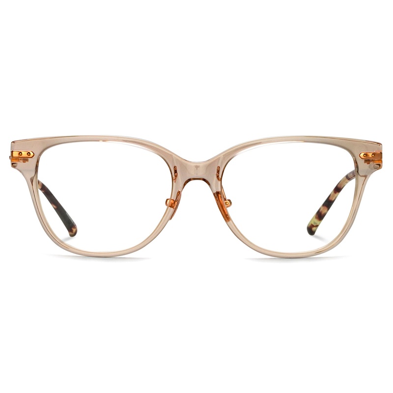 The Linda Farrow // Hadid eyeglasses draw inspiration from strong architectural lines, resulting in a distinctive D-frame design. Crafted from hand-polished acetate and ultra-lightweight gold titanium, they embody the brands dedication to luxury and innova