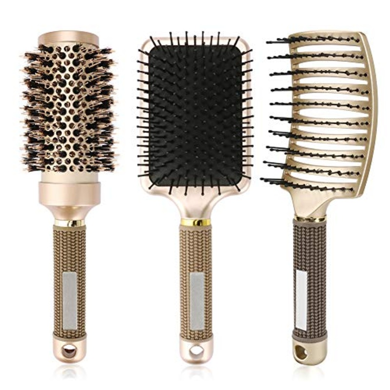 Includes 3 pieces -3Boar Bristles Round Brush, Anti-static Paddle Brush, Vented Hair Brush