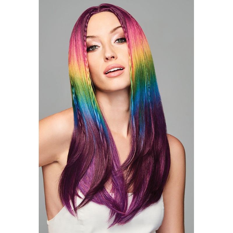 Wig Features: Sheer Lace Front, Center Mono Part,Heat FriendlySee Heat Friendly CareLets get this party started! When the sun goes down, this dream do is ready to rave! A prism of iridescent colors shimmers against a deep purple base. The monofilament cent