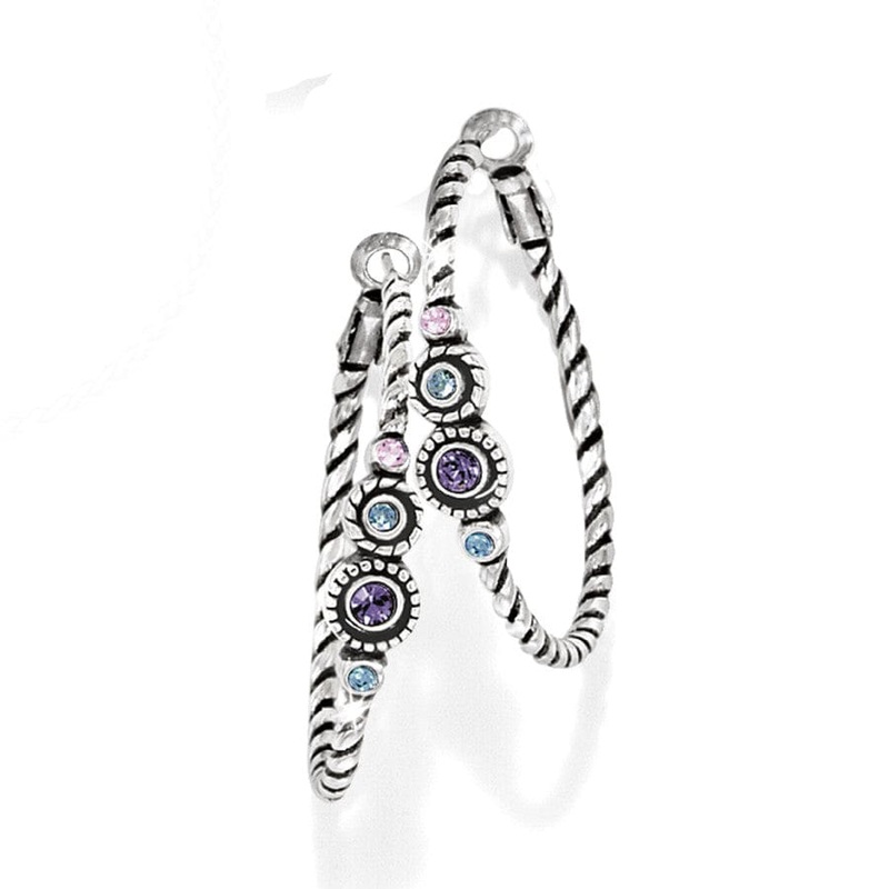 Clear fine quality crystals twinkle like distant lights in the night sky, along the rope-edge of these Halo Hoop earrings. Breathtaking in a silver-plated finish, these earrings will beguile you!