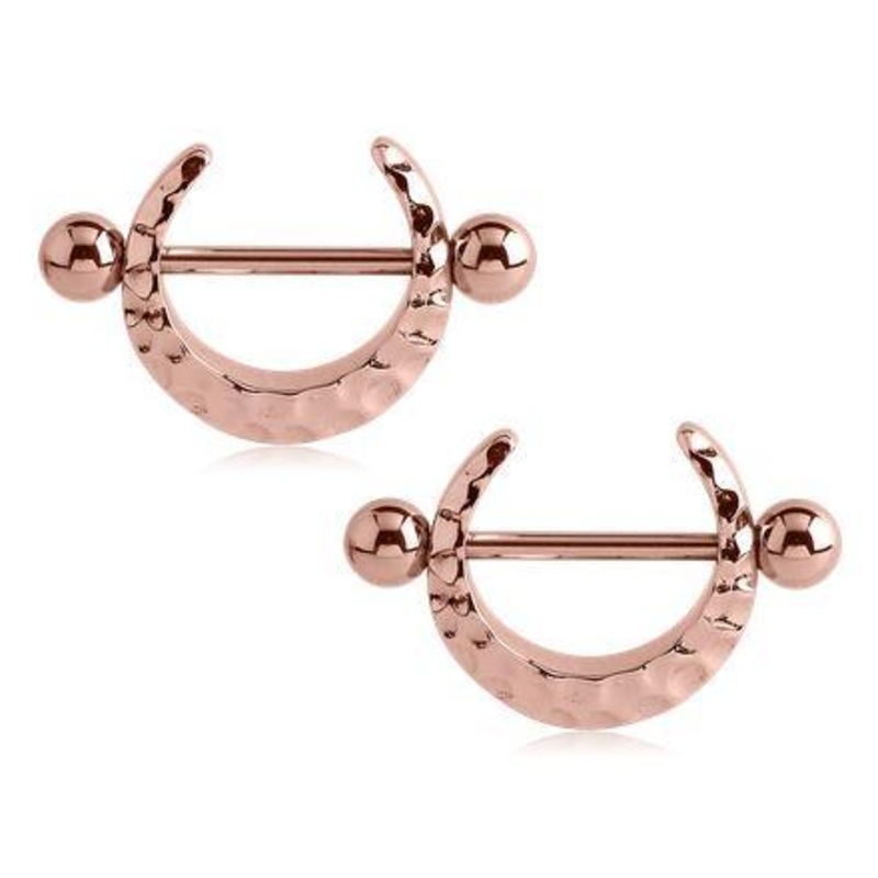 Hammered Crescent Rose Gold Nipple Shields 14g – 9/16″ diameter (14mm) Rose Gold Stainless