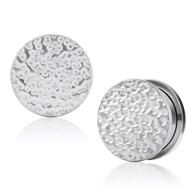 Hammered Stainless Screw-On Plugs 2 gauge (6mm) Stainless Steel Pair