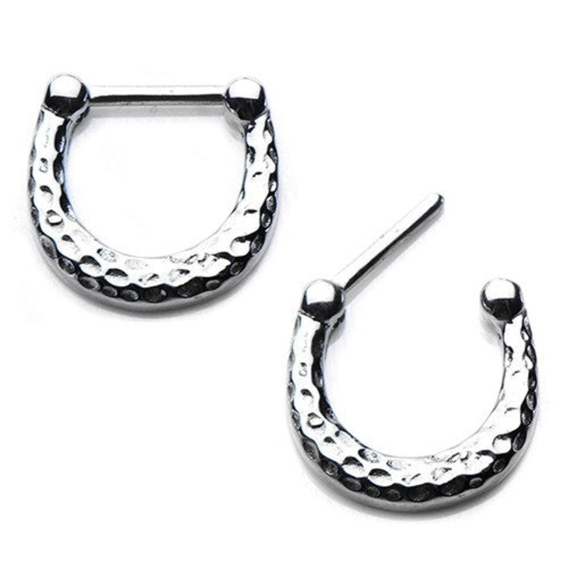 Hammered Stainless Septum Clicker 16g – 5/16″ diameter (8mm) Stainless Steel