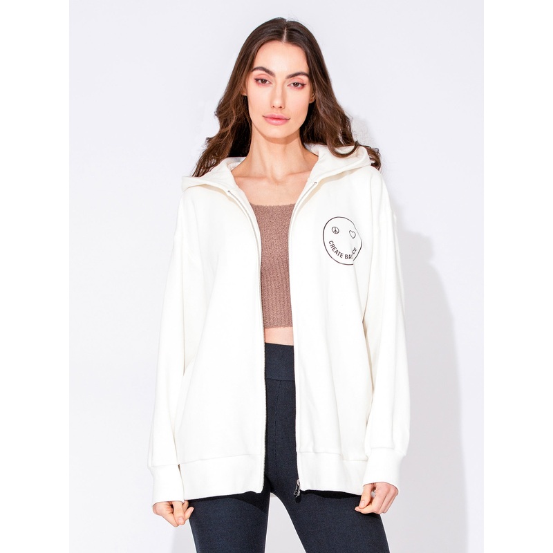 NATURAL COTTON+ AUMNIE select material+ Recyclable natural cotton+ Pre-shrunk and colour-fasted with sustainable methods to minimize environmental impactDescriptionCreate Balance & SmileExtra cozy oversized zip up hoodieRibbed cuffs and hem for adjustable